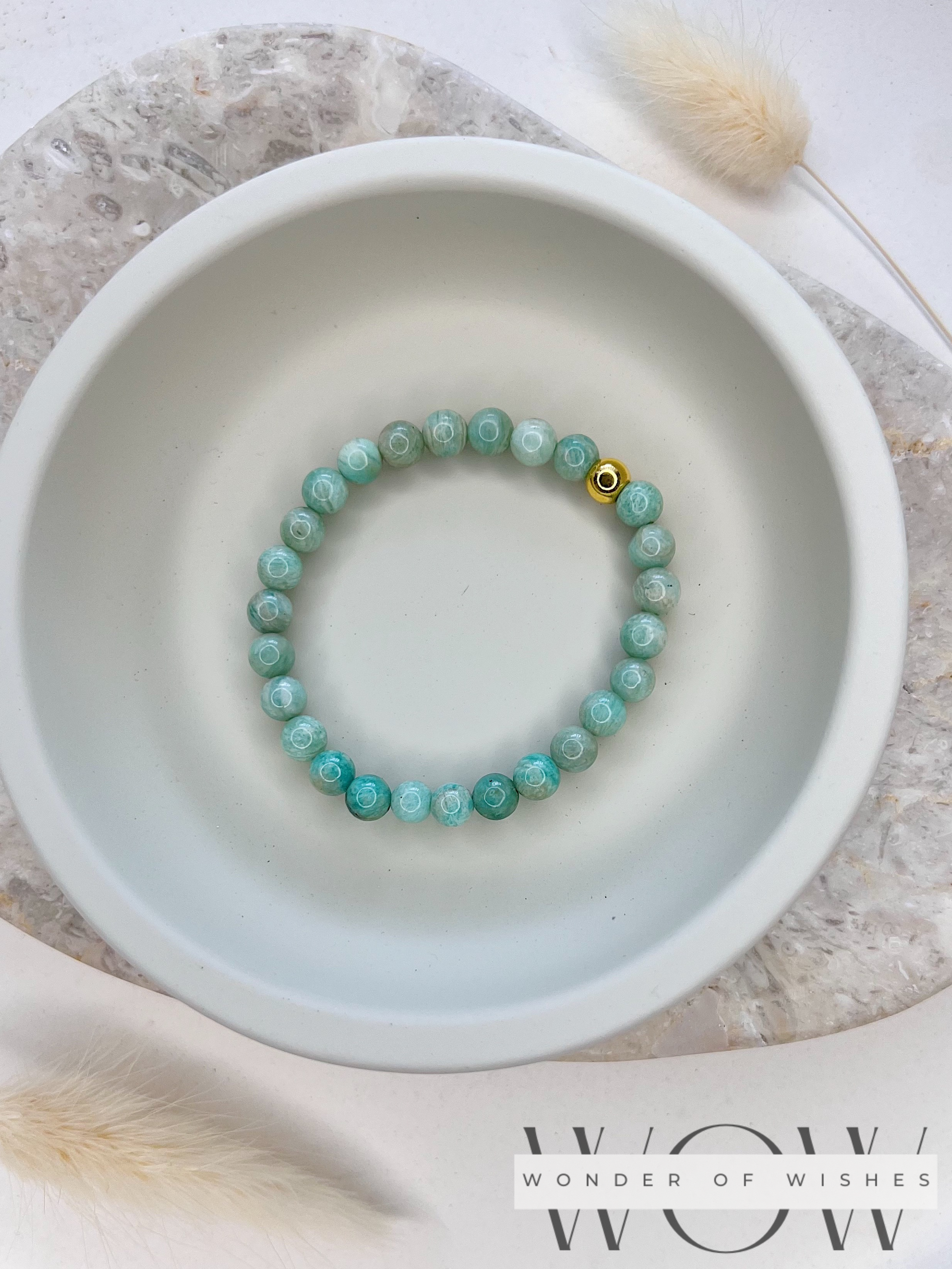 Dieses edle Armband aus Naturstein Amazonit wird mit viel Liebe zum Detail in Handarbeit gefertigt. Jedes Stück ist ein Unikat und besteht aus hochwertigen, nickelfreien Materialien, die hautfreundlich und angenehm zu tragen sind. Der sanft schimmernde Blau/Grünton des Amazonits verleiht dem Armband eine besondere Ausstrahlung und macht es zu einem stilvollen Begleiter für jeden Anlass.