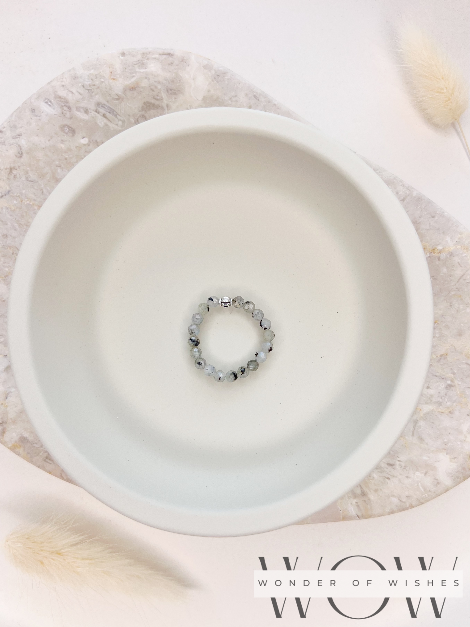 Dieser edle Perlenring aus Naturstein Labradorit wird mit viel Liebe zum Detail in Handarbeit gefertigt. Jedes Stück ist ein Unikat und besteht aus hochwertigen, nickelfreien Materialien, die hautfreundlich und angenehm zu tragen sind. Der Weiss/Schwarzton des Labradorit verleiht dem Perlenring eine harmonische, elegante Ausstrahlung und macht es zu einem stilvollen Begleiter für jeden Anlass.