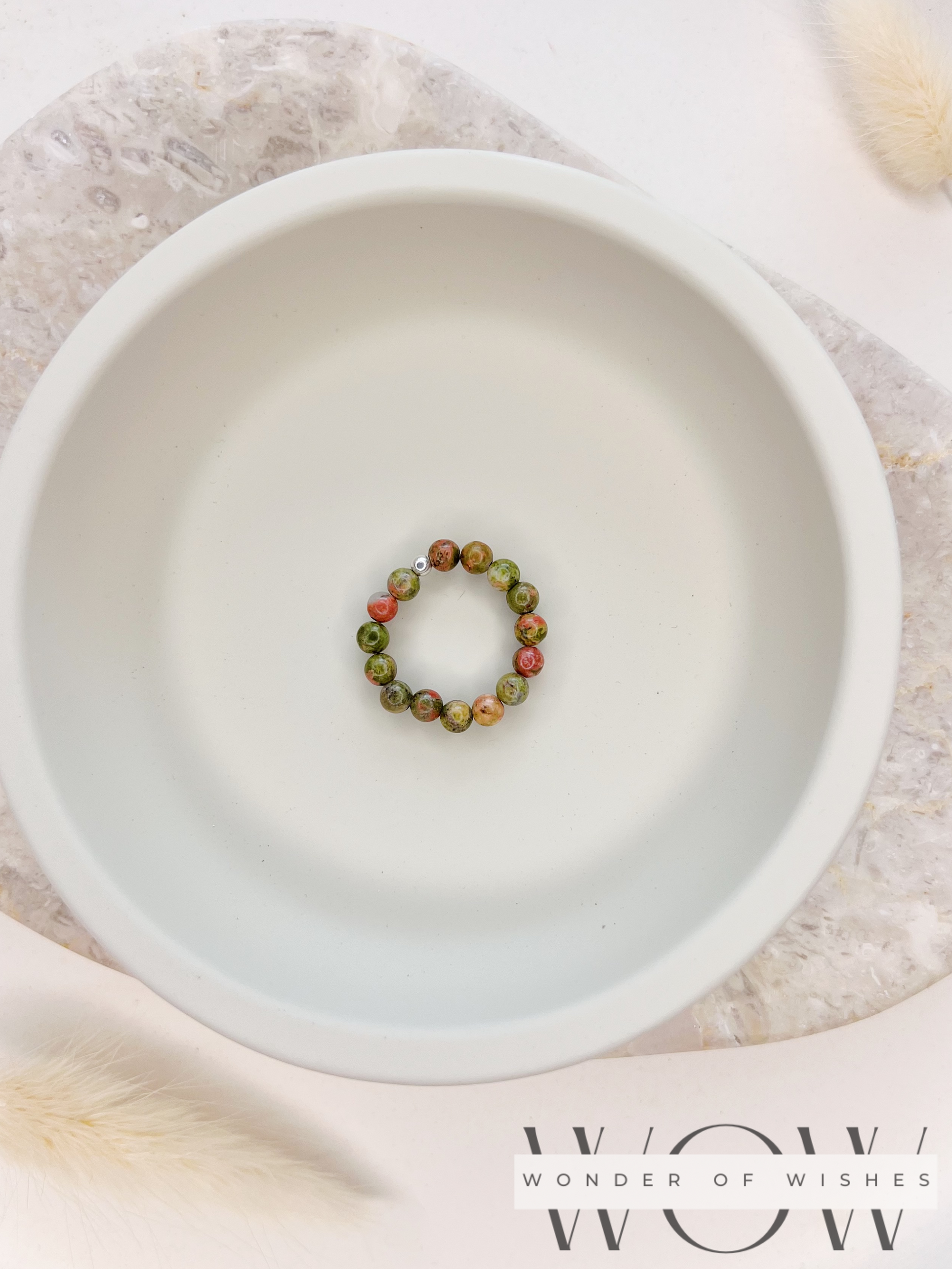 Dieser edle Perlenring aus Naturstein Jasper wird mit viel Liebe zum Detail in Handarbeit gefertigt. Jedes Stück ist ein Unikat und besteht aus hochwertigen, nickelfreien Materialien, die hautfreundlich und angenehm zu tragen sind. Der Grün/Orangeton des Jasper verleiht dem Perlenring eine harmonische, elegante Ausstrahlung und macht es zu einem stilvollen Begleiter für jeden Anlass.