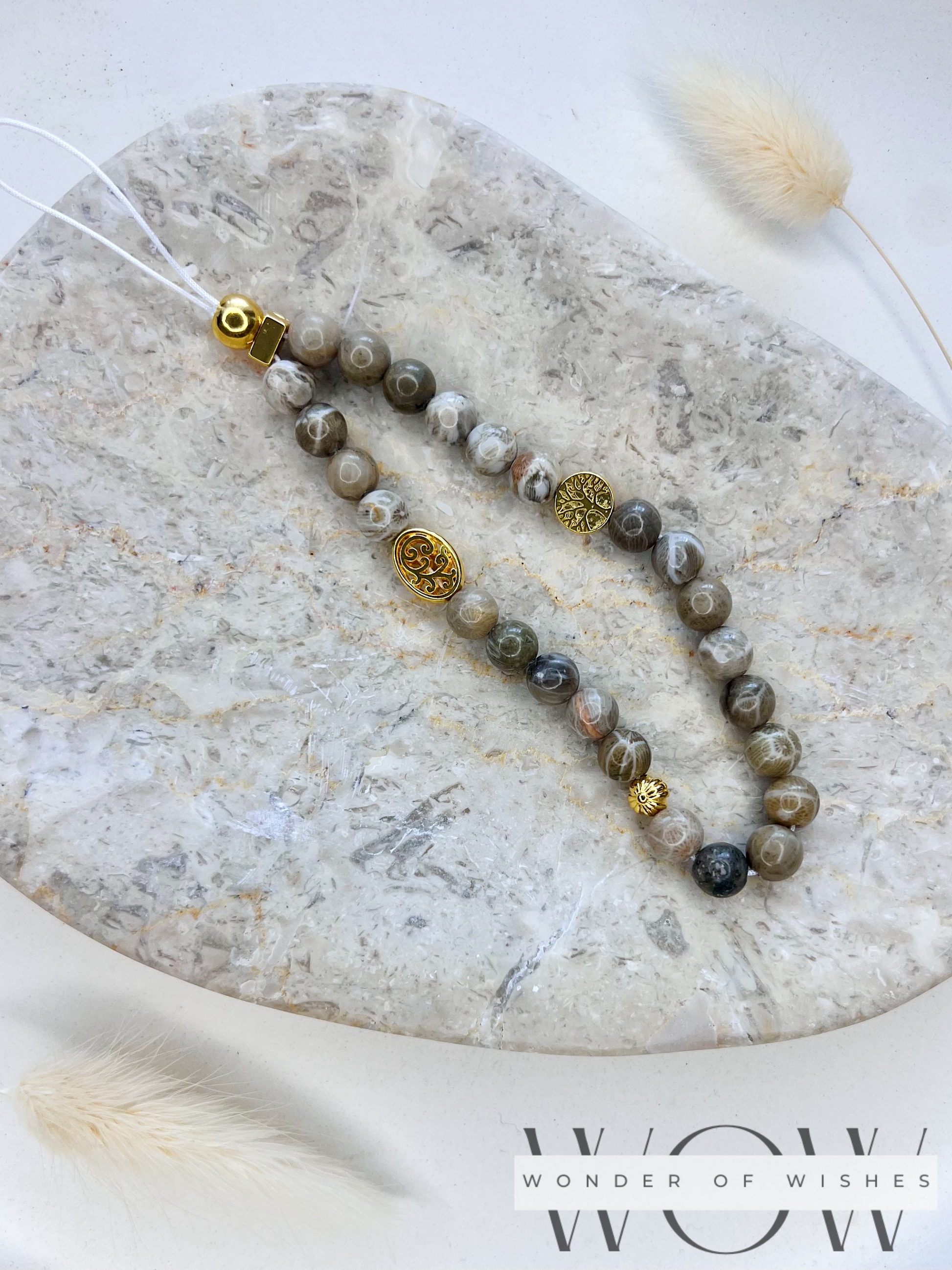 Diese edle Handykette aus Naturstein Jasper wird mit viel Liebe zum Detail in Handarbeit gefertigt. Jedes Stück ist ein Unikat und besteht aus hochwertigen, nickelfreien Materialien, die hautfreundlich und angenehm zu tragen sind. Der Grau/Braunton des Jasper verleiht der Handykette eine harmonische, elegante Ausstrahlung und macht es zu einem stilvollen Begleiter für jeden Anlass.